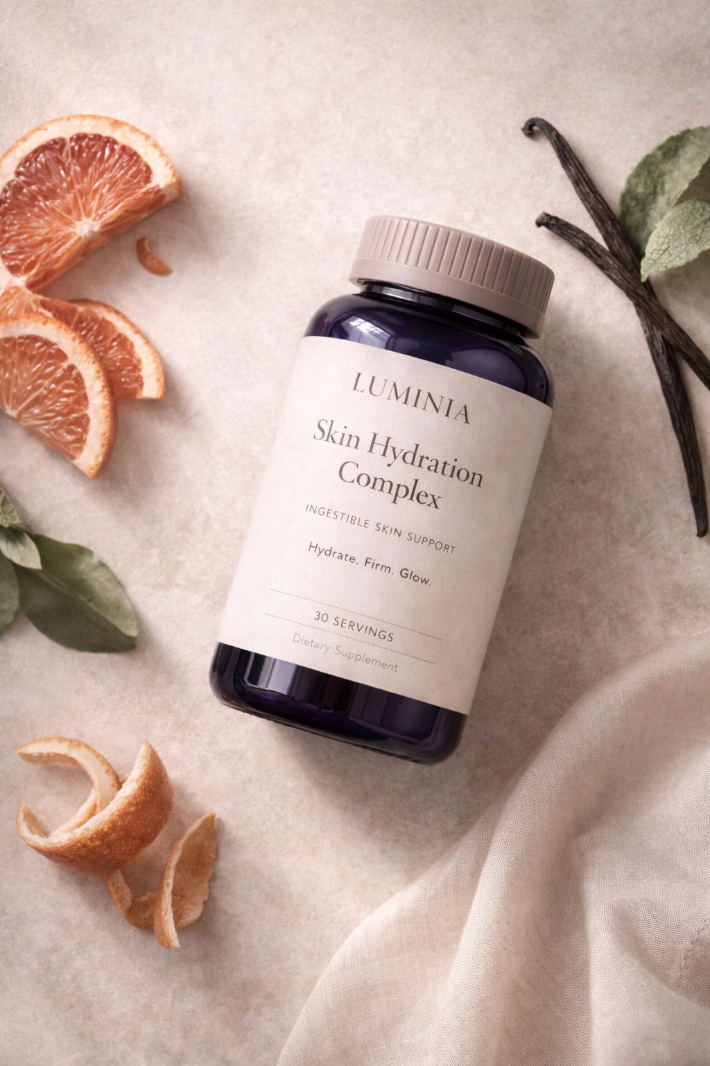 LUMINIA is formulated to support internal systems that influence visible skin quality over time — including hydration balance, barrier lipid support, antioxidant defense, and cellular energy. It’s designed to complement topical skincare, not replace it.